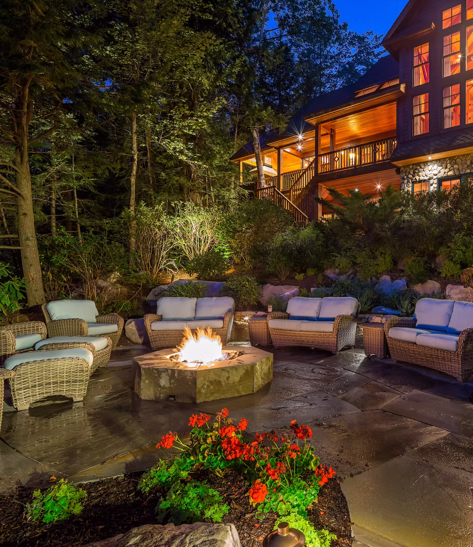 db Design Group LLC designed an elaborate master plan for this enchanting lakeside retreat. The project scope included a reconfigured driveway that dramatically enhanced the privacy, function and arrival experience for this stunning lakeside property. In addition, natural stone walkways with a series of granite steps and landings provided access between the main house, boathouse, dock and lakefront patio space. The end result was a home that appeared to have been tucked into the hillside for ages with unique gathering spaces surrounded by lush, native plant material.